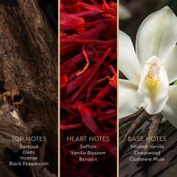 - Top notes of golden saffron intertwine with smokey oud and melt into a creamy vanilla creamy base